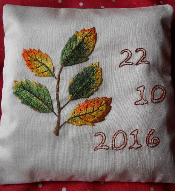 It was worked in about three sessions - two of them at the Show. I did a bit, went off to look around again, then came back and did some more, then took it home to finish off. Problem was that, as I'd left it in the hoop at the stand the first time I took a break, I forgot to take it out of the hoop when I was leaving the Show with it and, consequently, waltzed off with one of Katrina's hoops! I realised what I'd done shortly afterwards and posted it back to her, so I hope she got it OK...